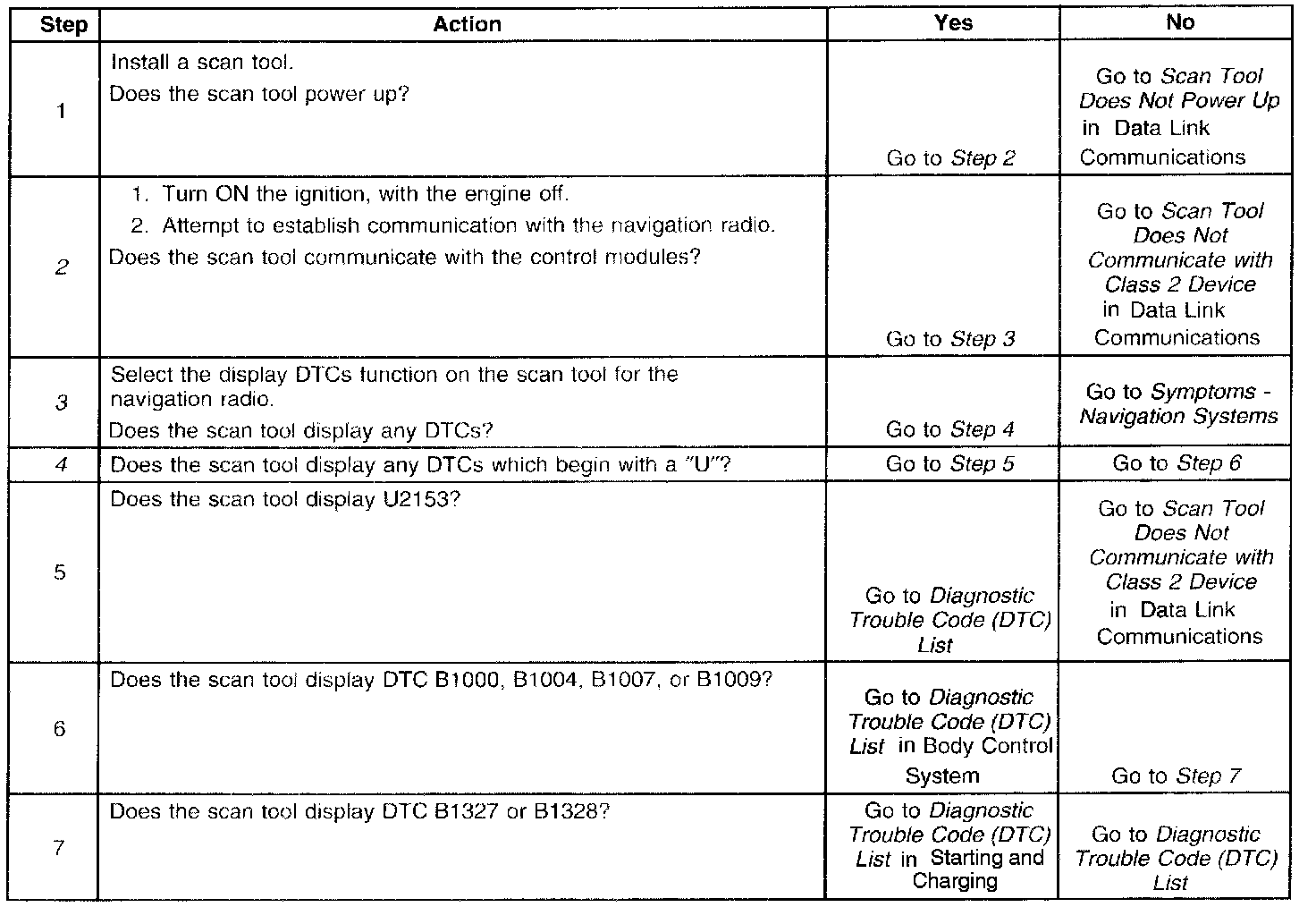 2. Lack of communication may be due to a partial malfunction of the class 2 serial data circuit or due to a total malfunction of the class 2 serial data circuit. The specified procedure will determine the particular condition.