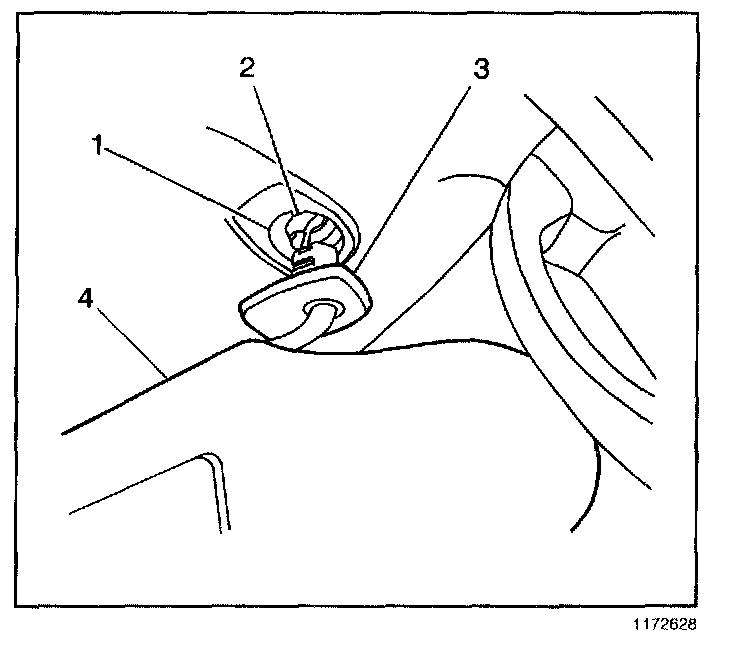 2. Using firm upward pressure, push the sunshade elbow (3) up and rotate it to unlock the secondary retainer (2) from the body.