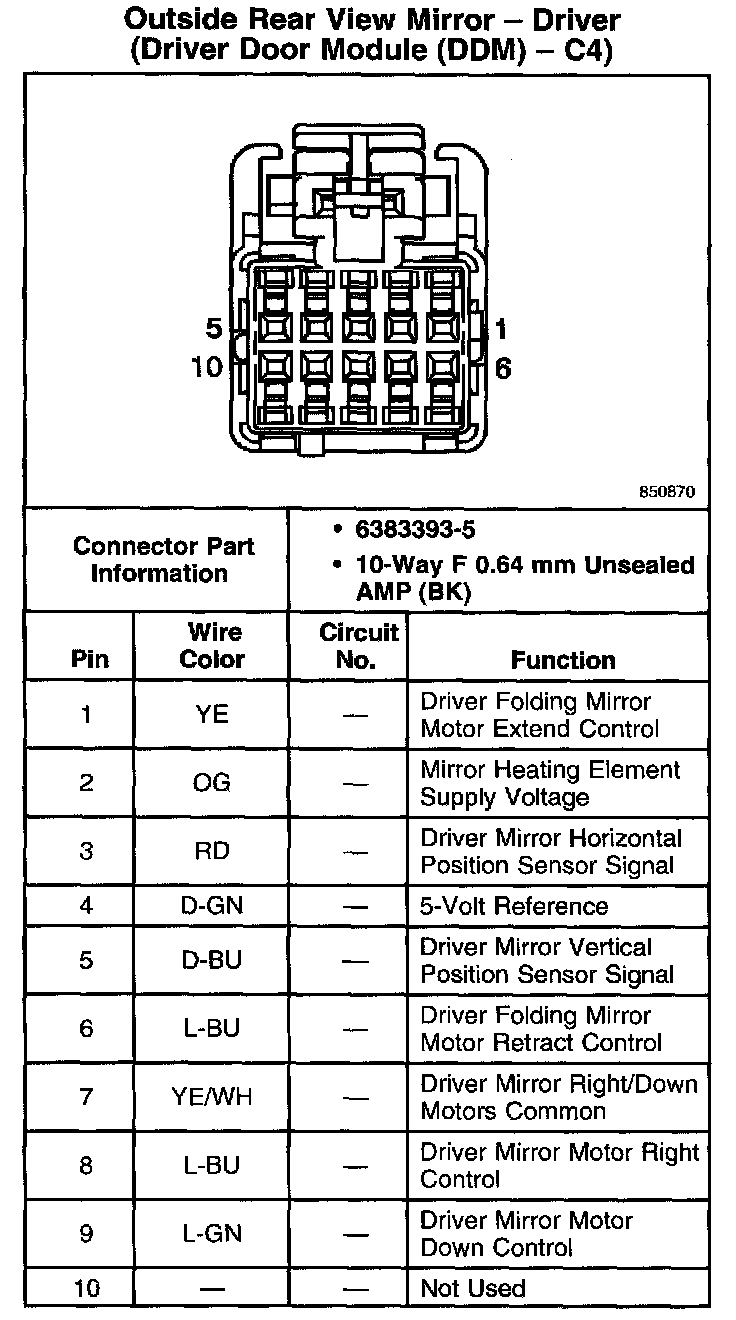 Outside Rear View Mirror - Driver (Driver Door Module (DDM) - C3):