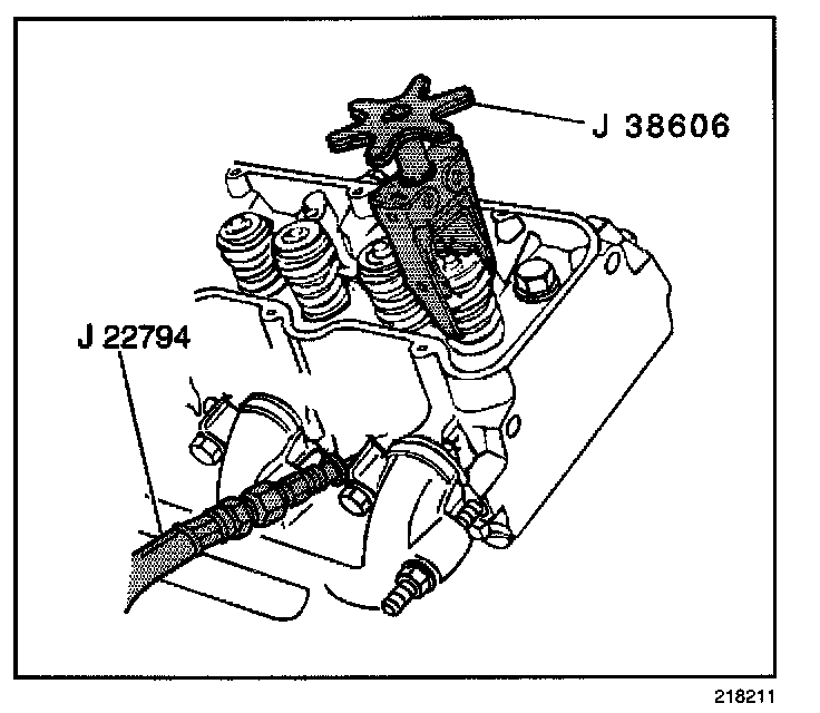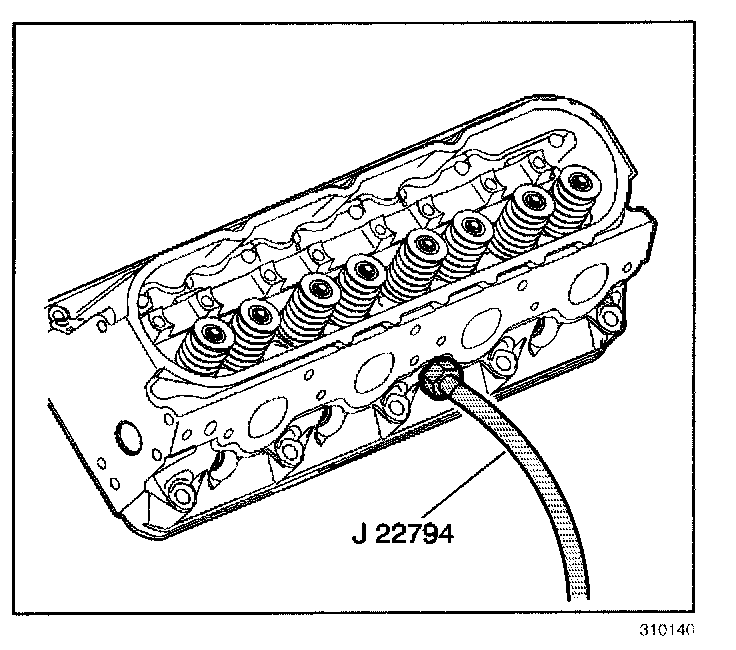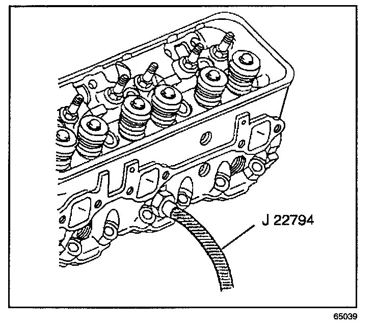 8. Apply compressed air to J 22794 in order to hold the valves in place.