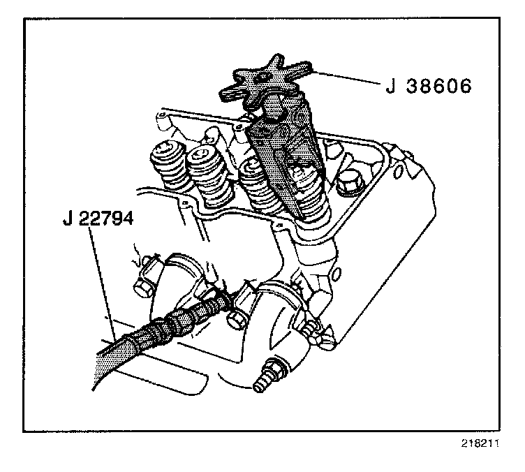 9. Use J 38606 in order to compress the valve spring.