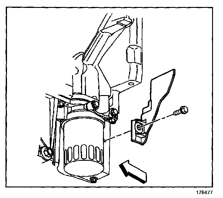 12. Slide the channel pin out of the oil pan tab.