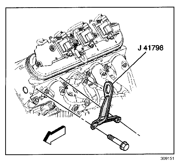 41. Remove the ignition coil, as required for the proper fit of the J 41798 before lifting the engine.