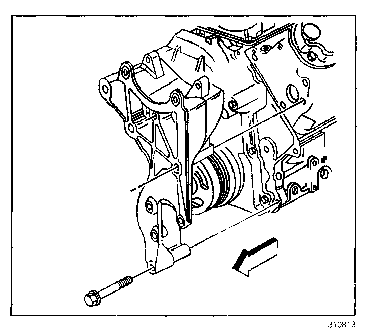 28. Install the rear power steering pump-to-engine block bolt until snug.