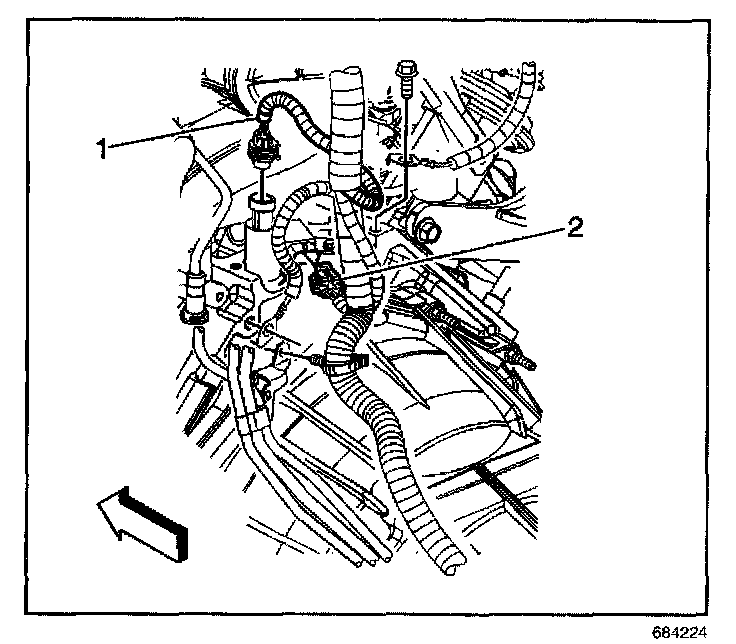 - Remove the EVAP tube end (2) from the solenoid (1).