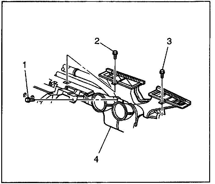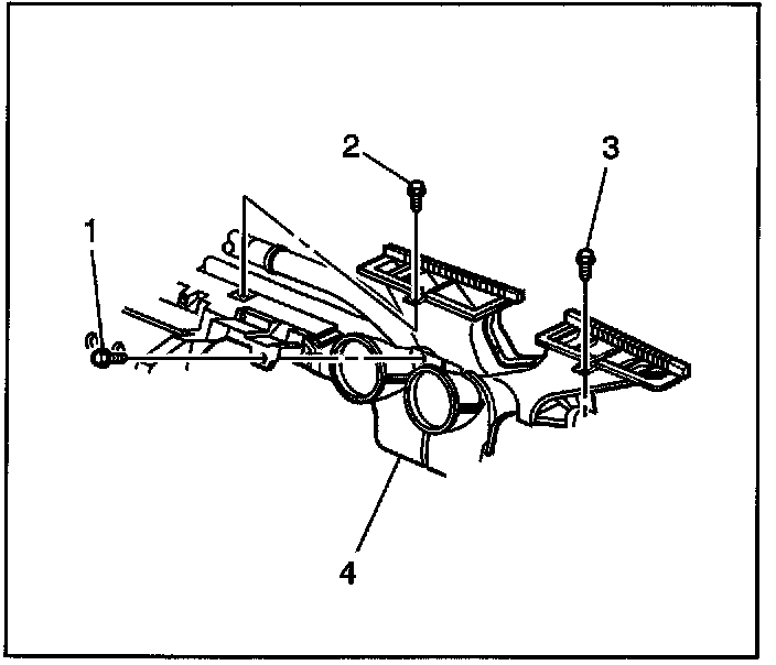 2. Remove the screw (1) from the air distribution duct (4).