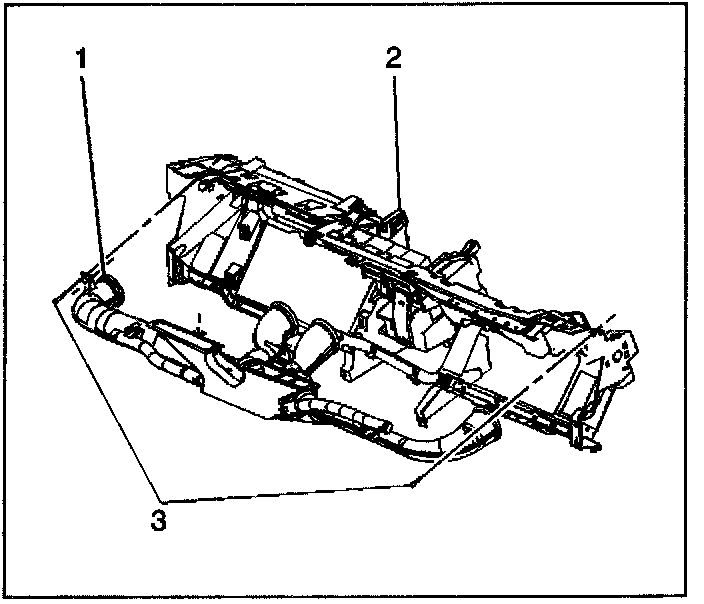 4. Remove the air distribution duct (1) from the I/P trim panel (2).