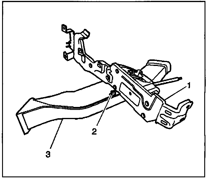 1. Install the air outlet duct-rear (3) to the console support bracket (1).