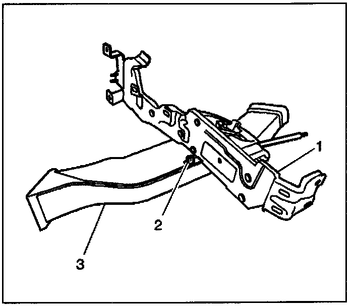 3. Remove the air outlet duct-rear (3) from the console support bracket (1).