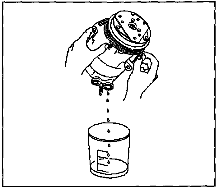 1. Drain the oil from both the suction and discharge ports of the removed compressor into a clean, graduated container.