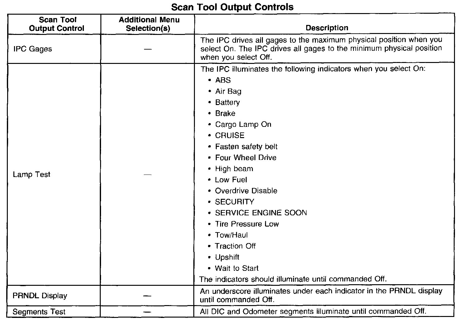 Scan Tool Output Controls: