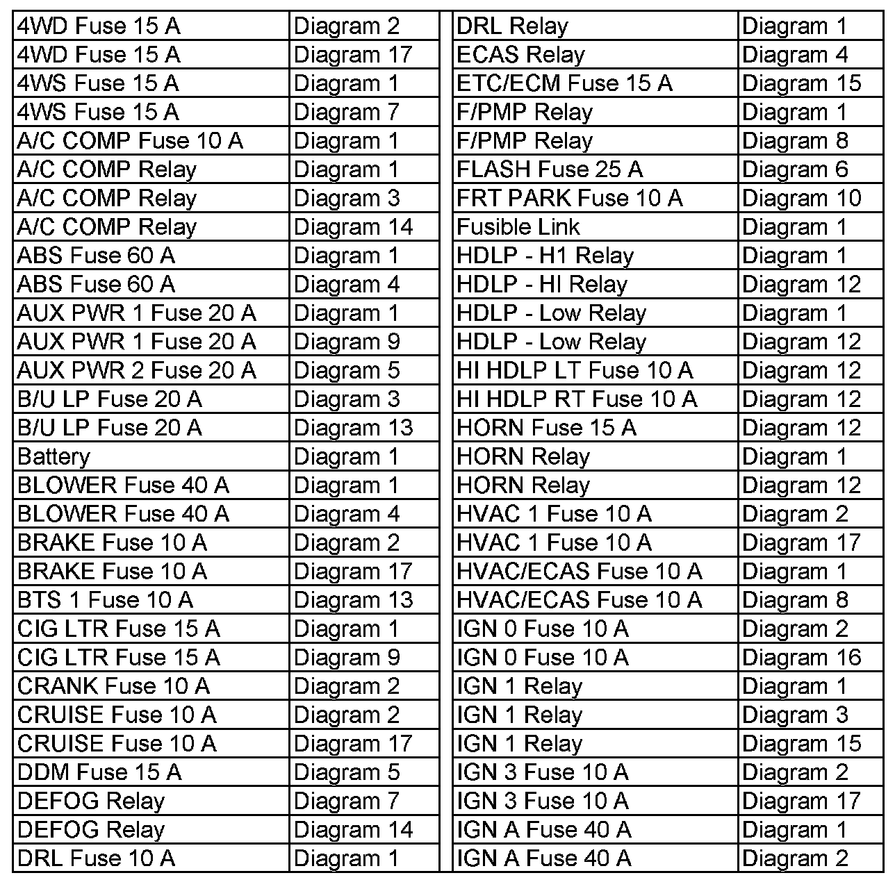 4WD Fuse 15A - IGN A Fuse 40A: