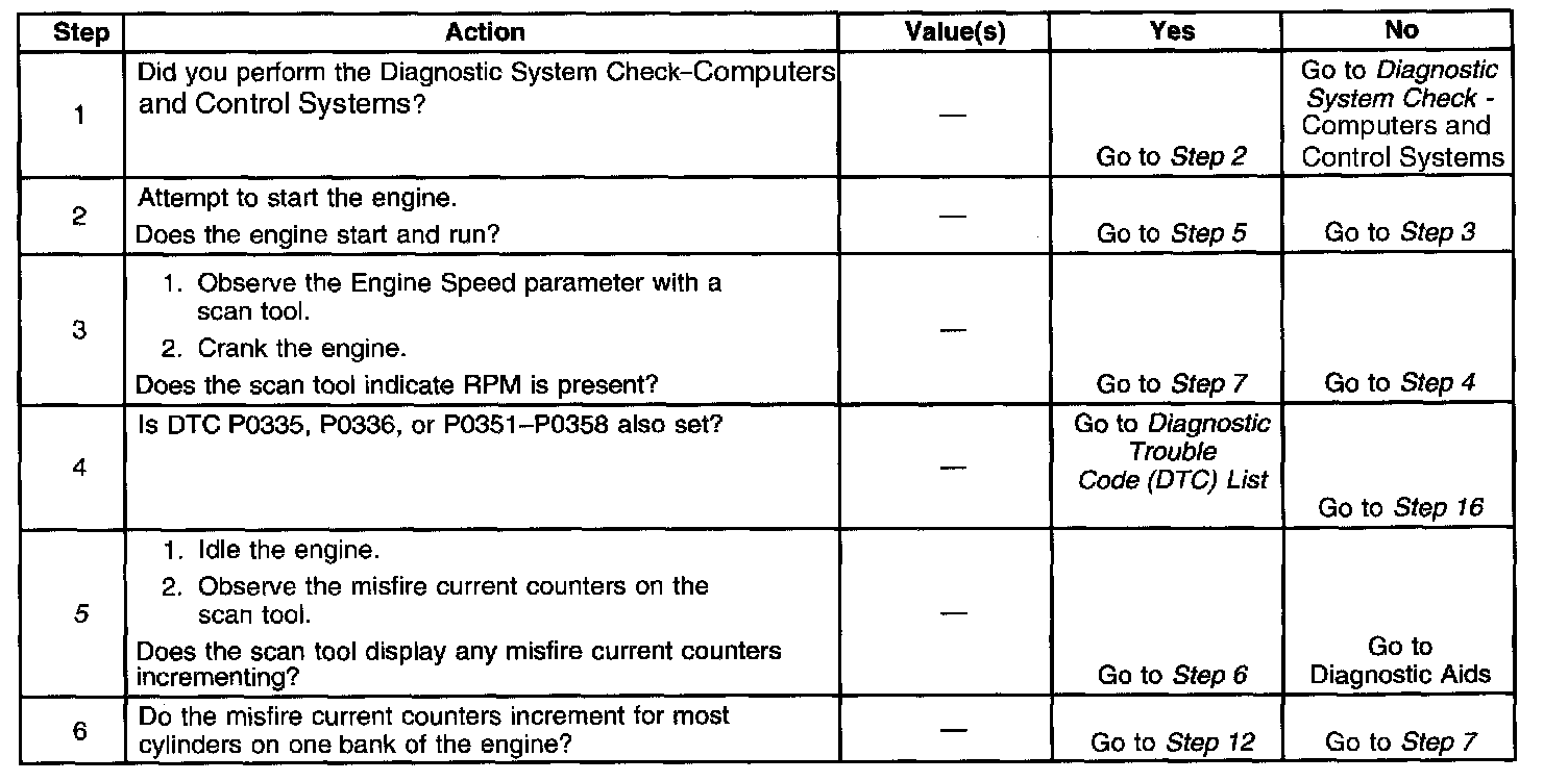 The numbers below refer to the step numbers on the diagnostic table.