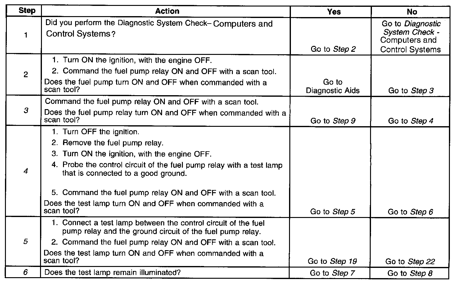 6. This step determines if a voltage is constantly being applied to the fuel pump relay.