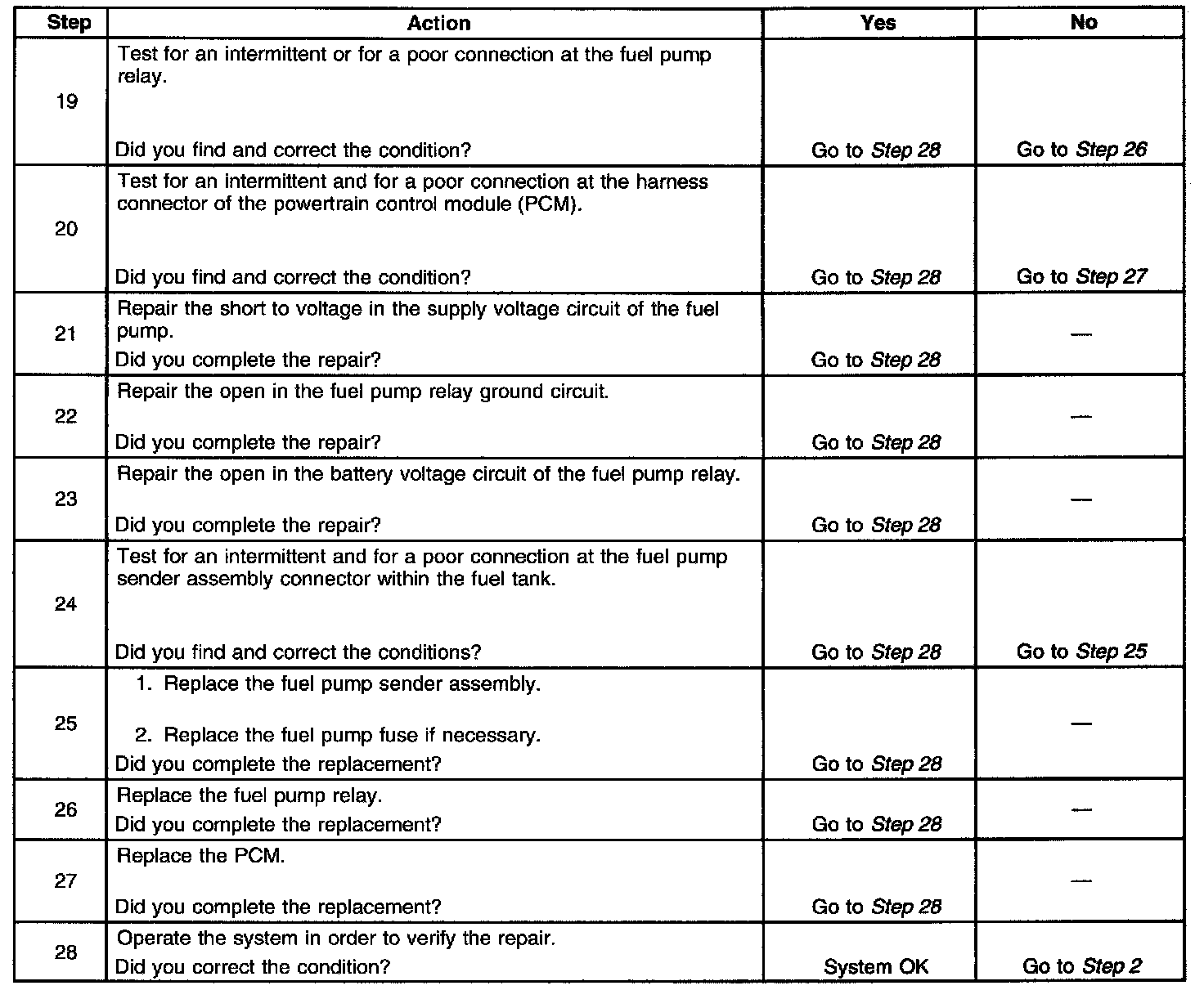 3. This step determines if the condition is located on the coil side or on the switch side of the fuel pump relay.
