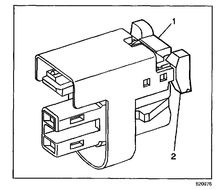 10. While pushing the tab (1) on the injector connector in, release the CPA (2).