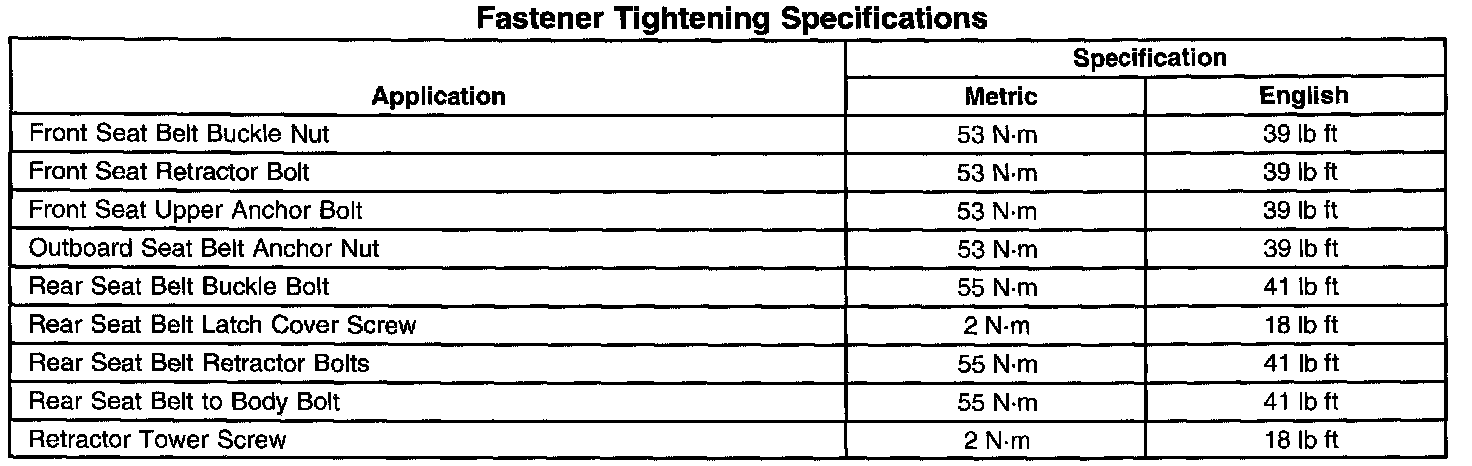 Seat Belt Systems: Specifications