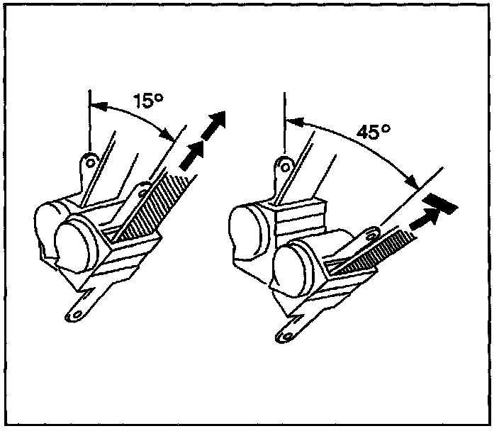 4.3. Ensure that the seat belt webbing can be pulled from the retractor at an inclination of 15 degrees or less and cannot be pulled from the retractor at an inclination of 45 degrees or more.