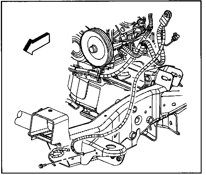 2. Position the negative cable and forward lamp wiring harness ring terminals to the frame.