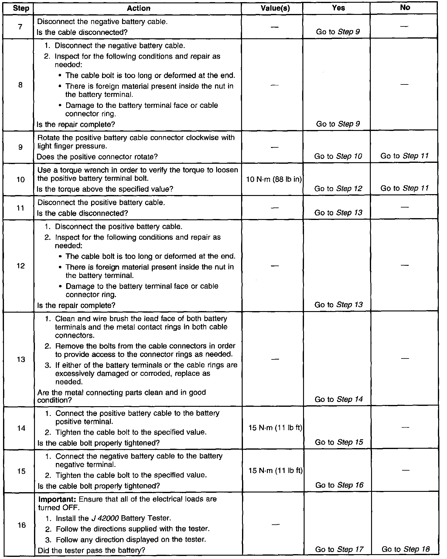 - If the tester displays a REPLACE BATTERY or BAD CELL-REPLACE result for a battery tested in the vehicle with the battery cables connected, perform the following steps: