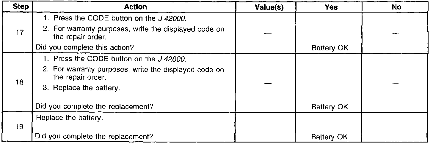 IMPORTANT: Always write the test code displayed by the tester on the repair order for any warranty purposes. The number is a unique code that describes the test data for a particular battery at a particular time. The test code may occasionally repeat when you retest the same battery. More often, each test will result in a different code. Use the test code from the second, or Out of Vehicle test.