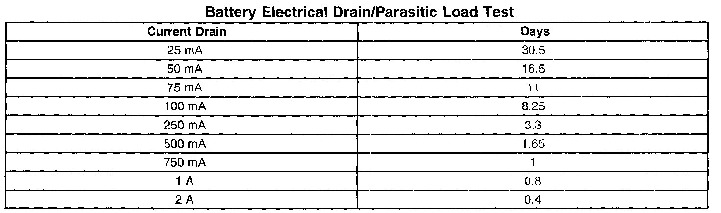 Battery Electrical Drain/Parasitic Load Test: