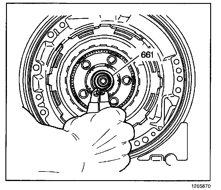 1. Use snap ring pliers remove the output shaft to input carrier retainer (661).