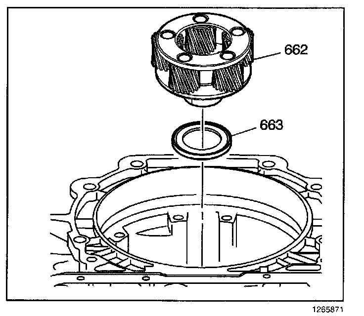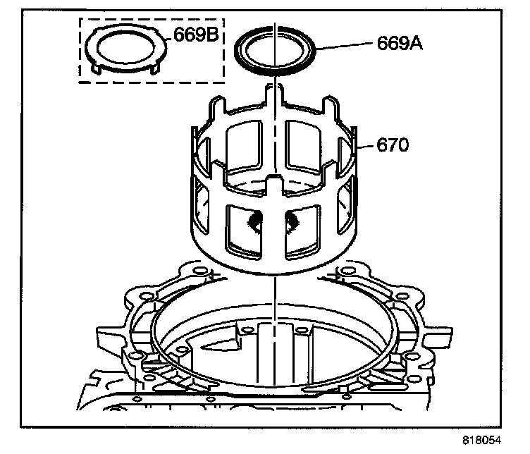 4. Remove the thrust washer (669a or 669b) and the reaction sun shell (670).