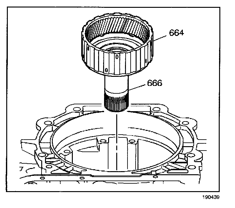 3. Remove the input internal gear (664) and the reaction carrier shaft assembly (666).