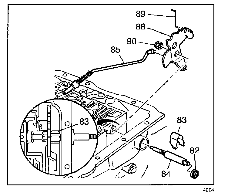 - The inside detent lever (88) for damage or cracks