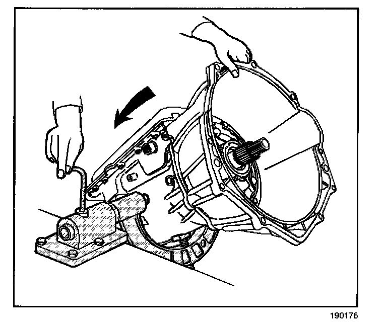Rotate the transmission so that the converter housing is up. Allow the transmission fluid to drain from the case extension.