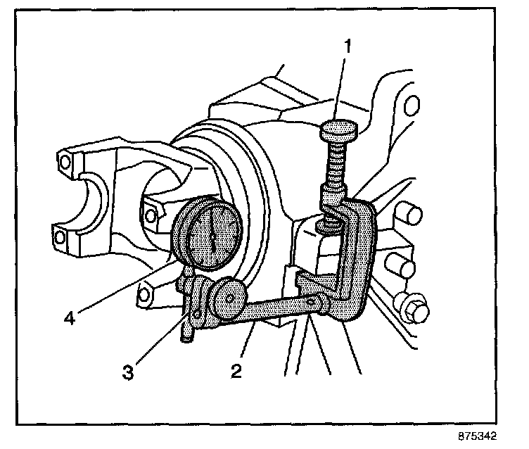 3. Move the pinion yoke back and forth through the pinion yoke's free play while not allowing the ring gear to move.