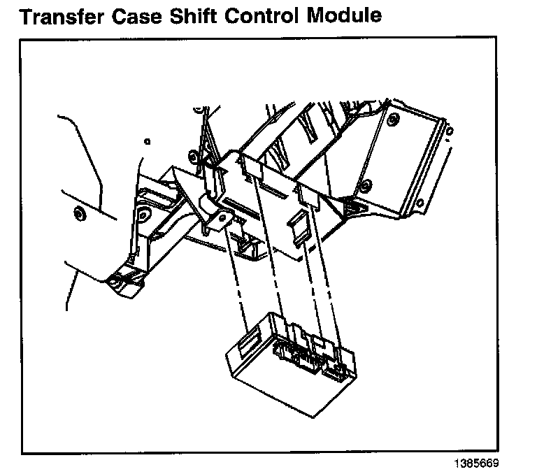 The transfer case shift control module uses the VIN information for calculations that are required for the different calibrations used base on axle ratio, transmission, tire size, and engine. The system does not know which calibration to use without this information. This information is provided to the transfer case shift control module via Class 2 data bus from the powertrain control module (PCM). The transfer case shift control module monitors vehicle speed via the Class 2 data bus from the PCM as well as controlling the operation of the transfer case encoder motor assembly.