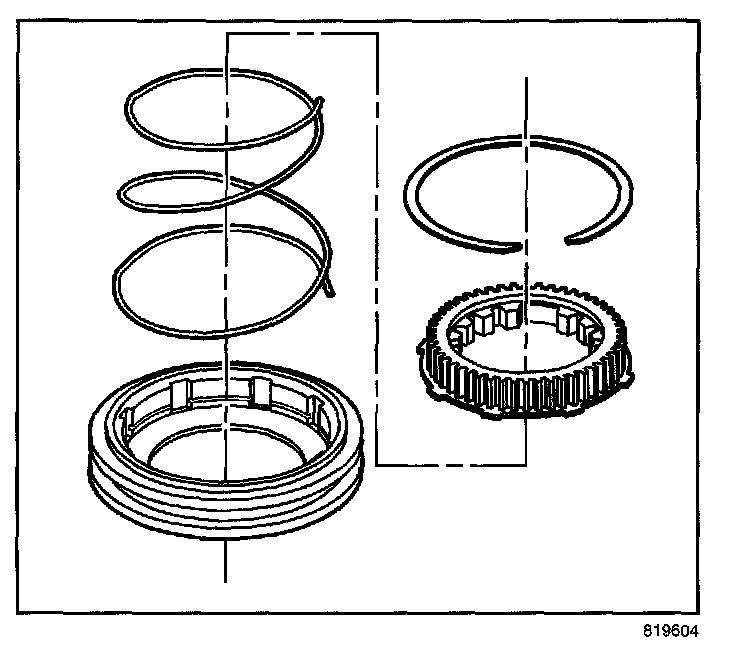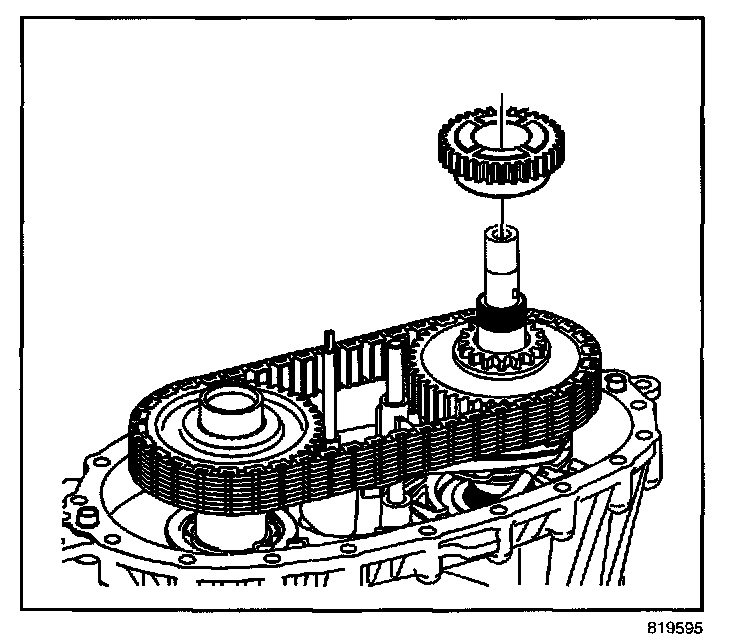 - Turn the mainshaft to align the slot on the inner lockup hub with the large tooth area on the lockup shift assembly hub.