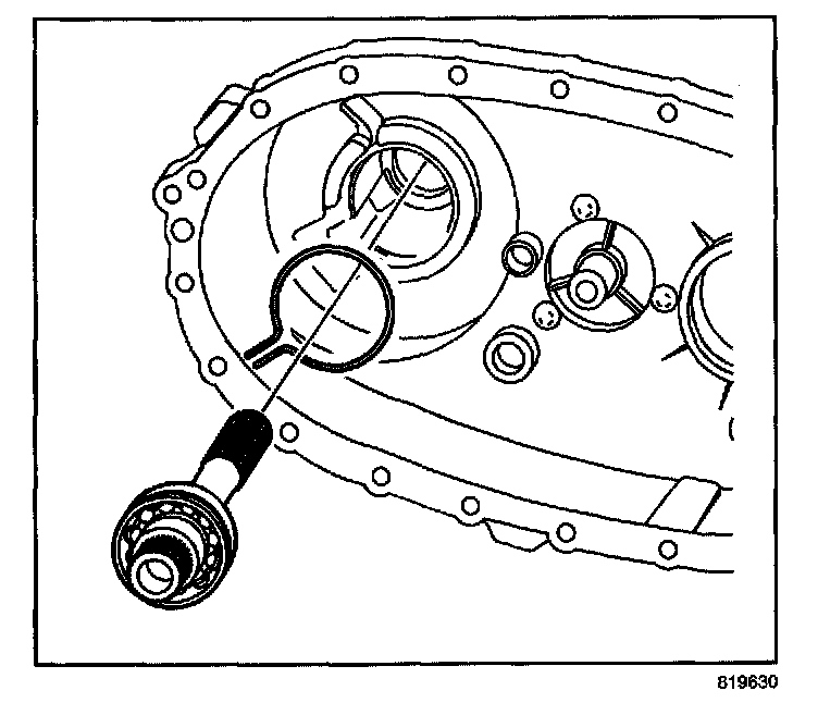 52.2. Install the rear output shaft bearing outer retaining ring until it is seated in the bearing groove.