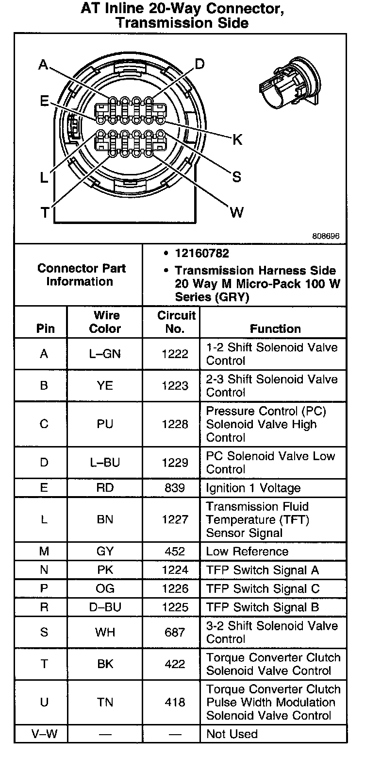 AT Inline 20-Way Connector, Transmission Side: