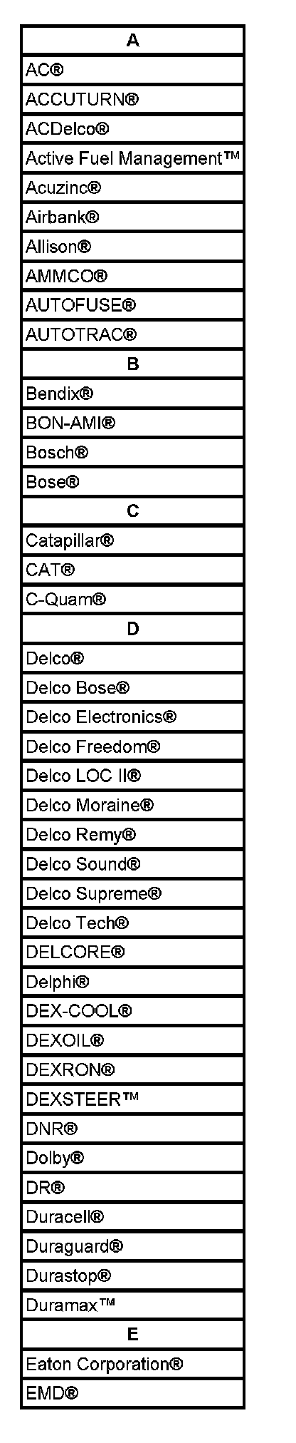 REGISTERED AND NON-REGISTERED TRADEMARKSListed are Registered Trademarks ((R)) or Non-Registered Trademarks ((TM)) which may appear in this service data.