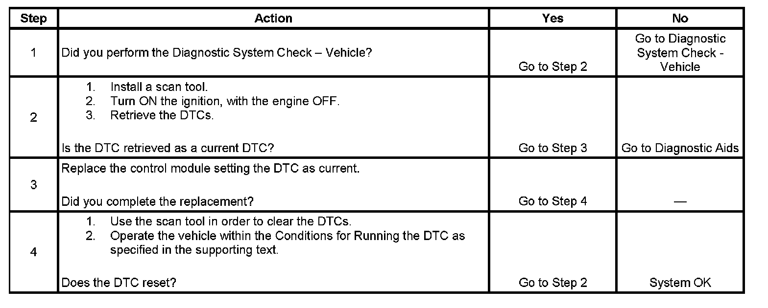 - If this DTC is retrieved as both a current and history DTC, replace the module.