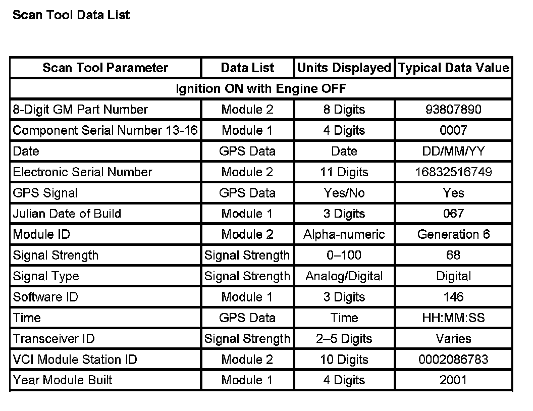 Scan Tool Data List: