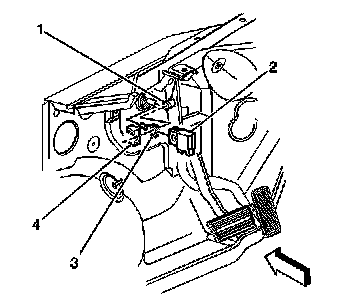 4. Install the pushrod (3) and the stoplamp switch (2) to the brake pedal pin (1).