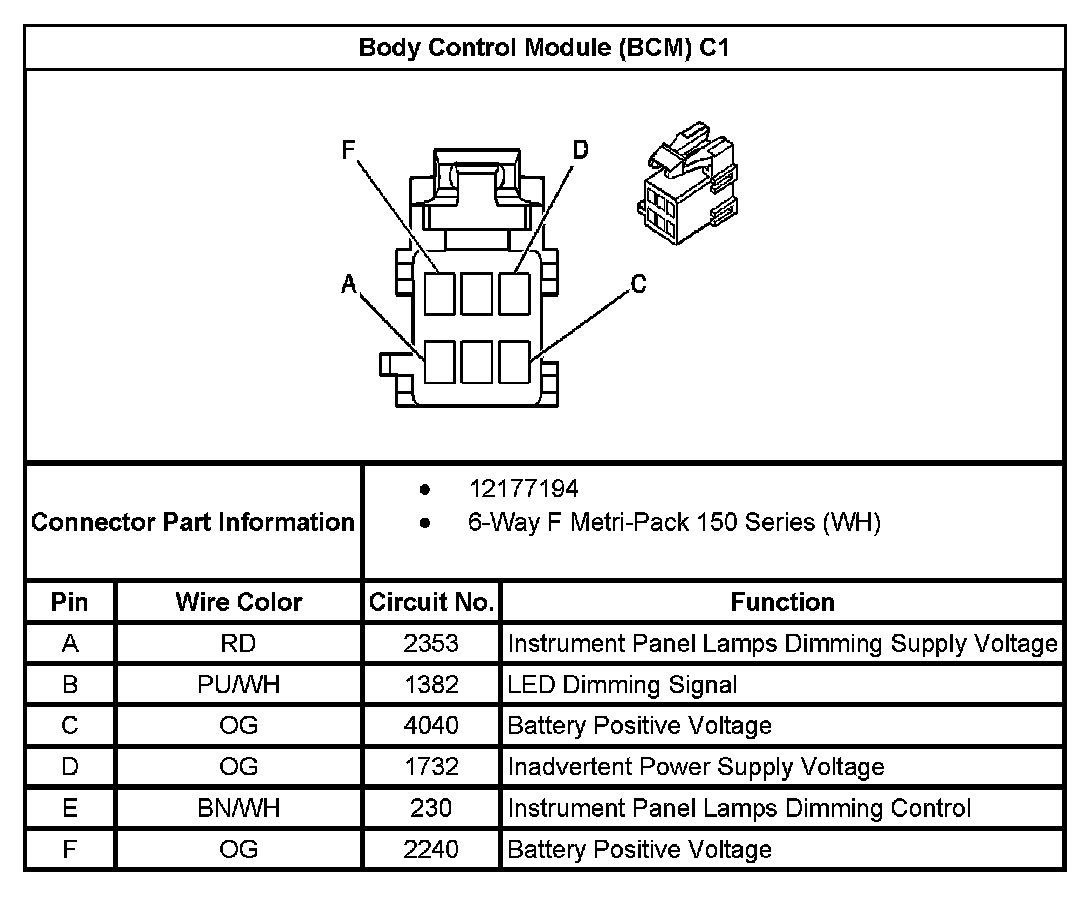 Body Control Module (BCM) C1: