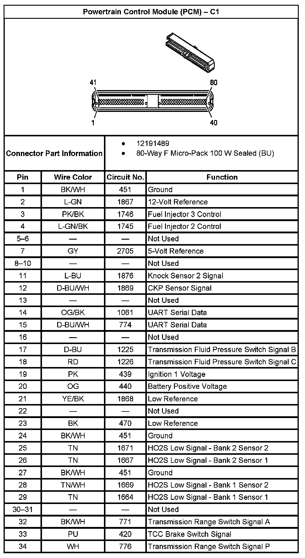 Powertrain Control Module (PCM) - C1 (Part 1):