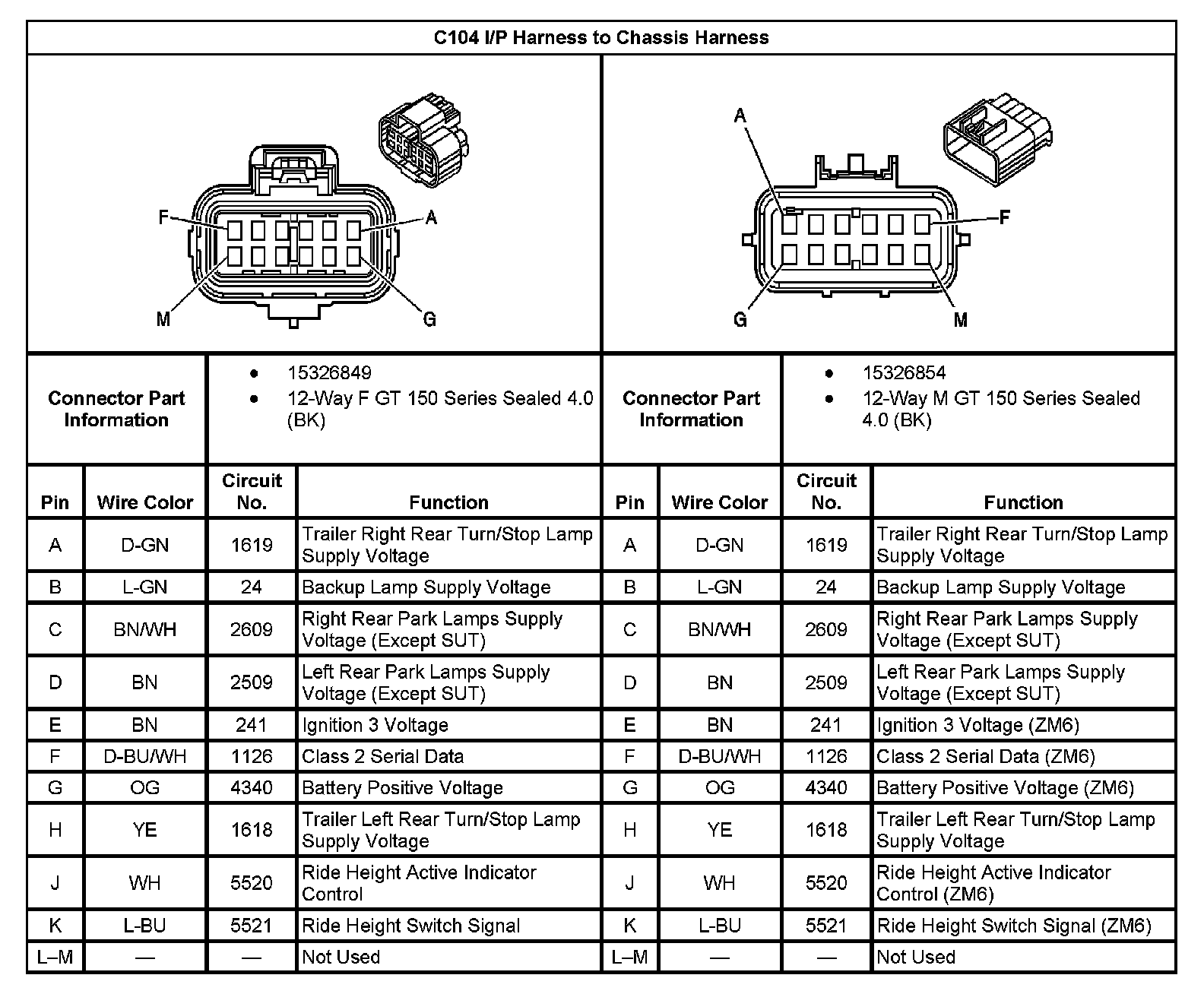 C104 I/P Harness To Chassis Harness: