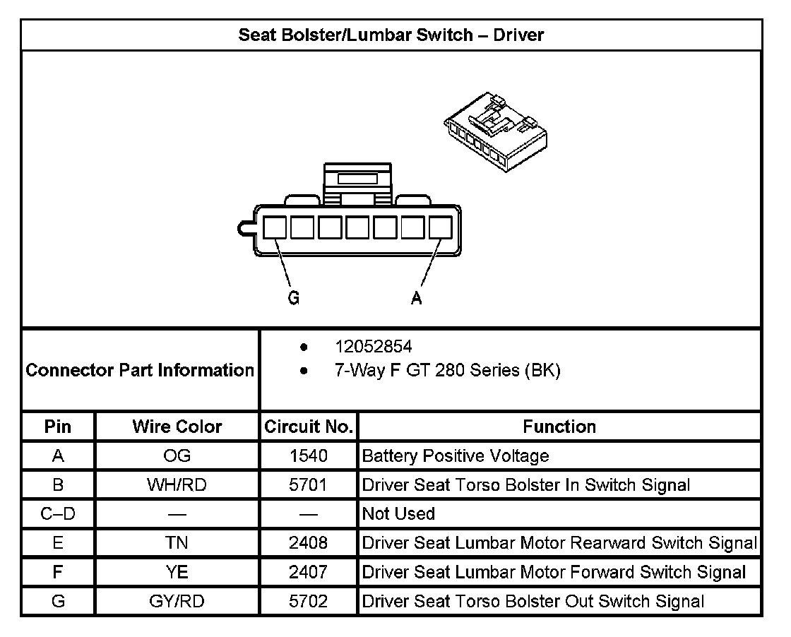 Seat Bolster/Lumbar Switch - Driver: