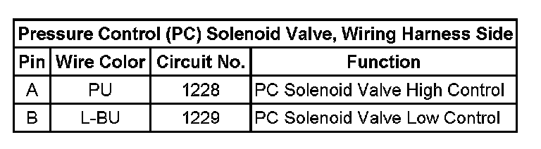 Pressure Control (PC) Solenoid Valve, Wiring Harness Side: