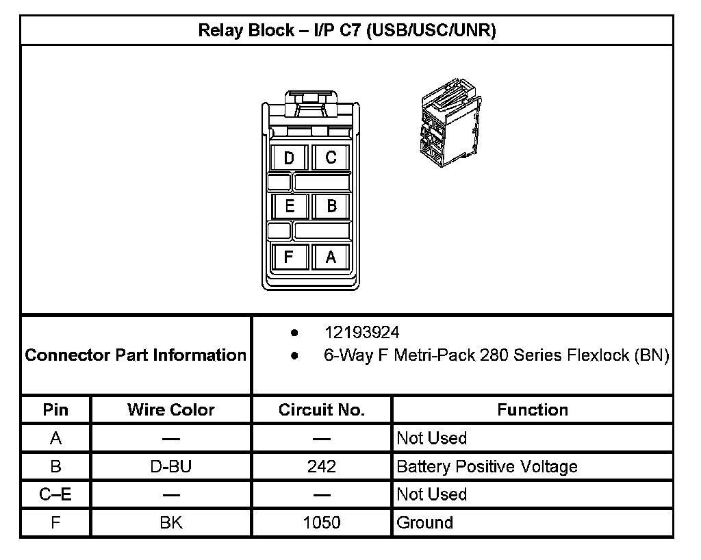 Relay Block - I/P C7 (With RPO Code USB/USC/UNR):