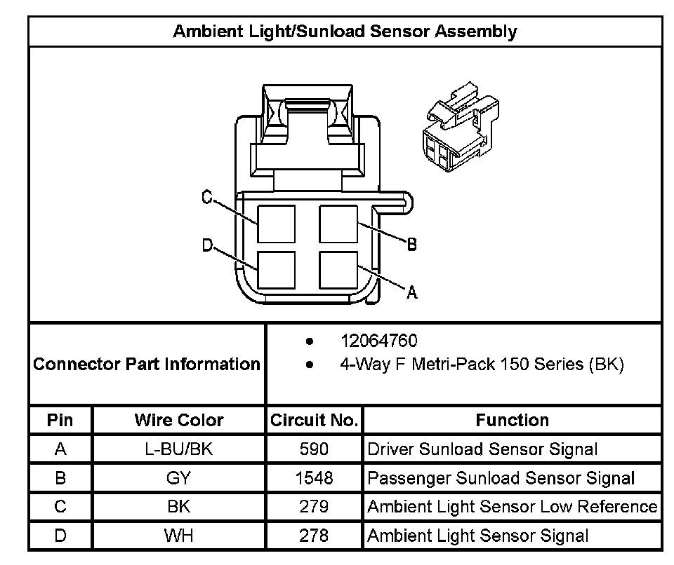 Ambient Light/Sunload Sensor Assembly: