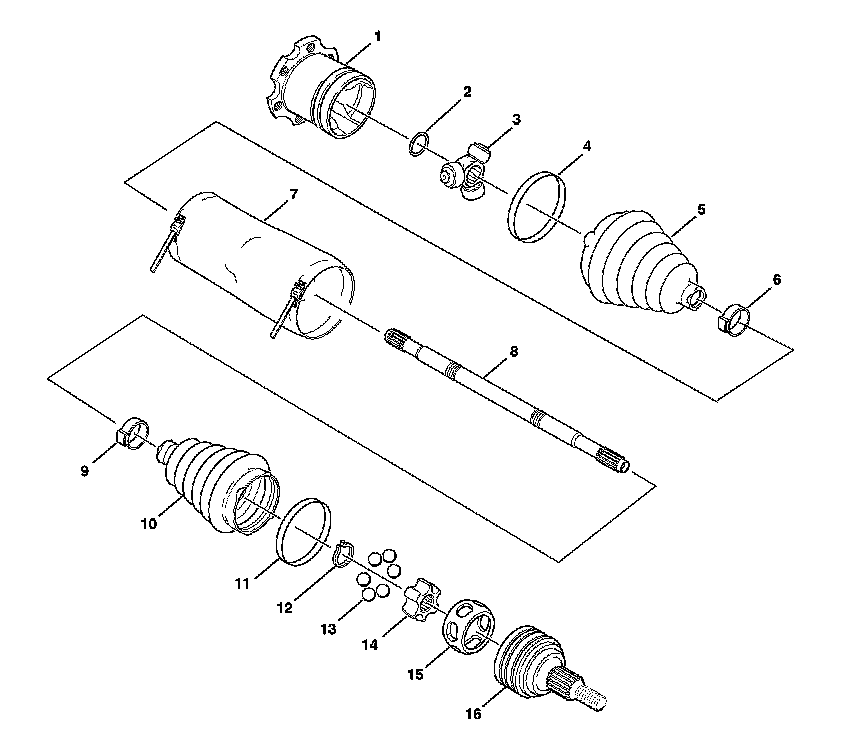 Halfshaft Components, Disassembled View: