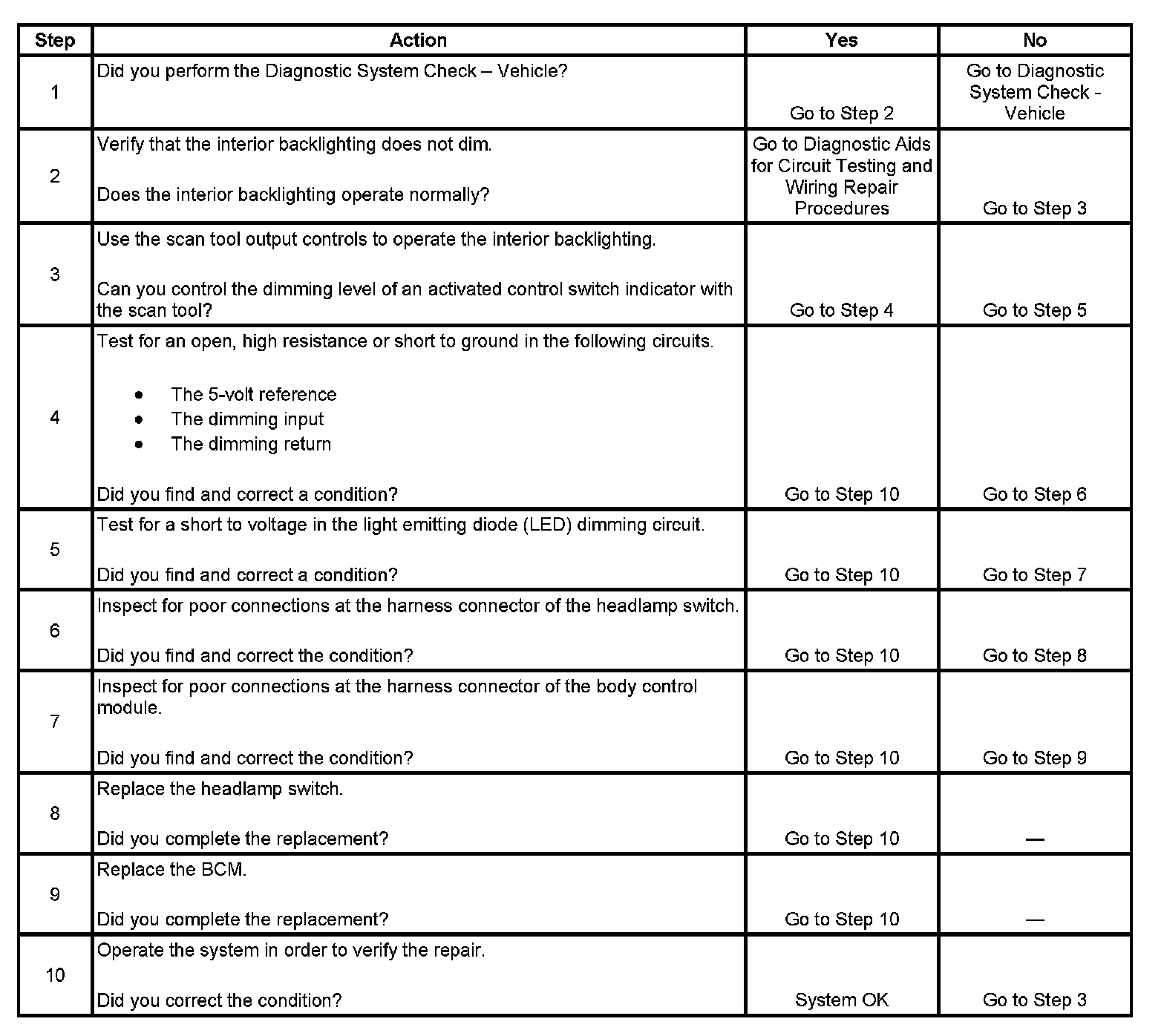Interior Backlighting Does Not Dim