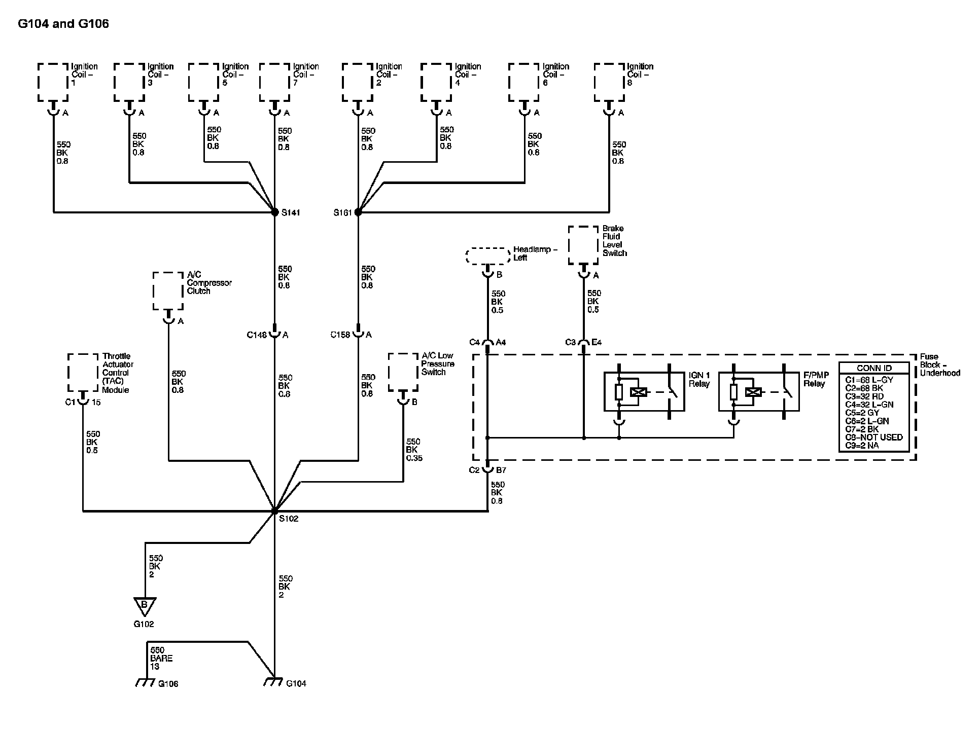 The locations for the Connectors, Grounds, Splices, and Grommets shown within these diagrams can be found via their numbers at Vehicle Locations.